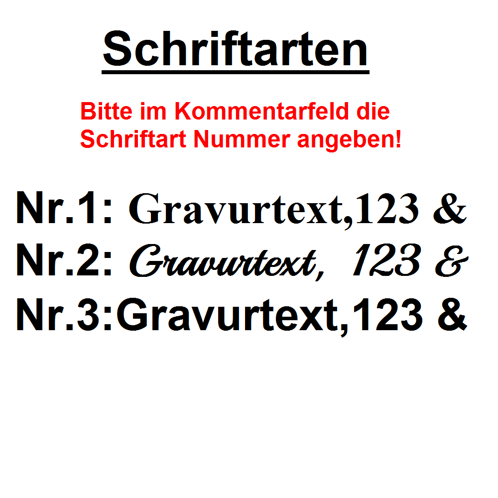Bitte denken Sie daran, falls gewünscht, Ihren Gravurtext bei Abschluss der Bestellung in das Kommentarfeld einzutragen.